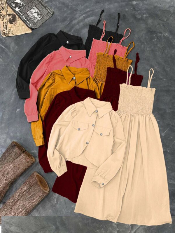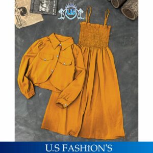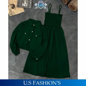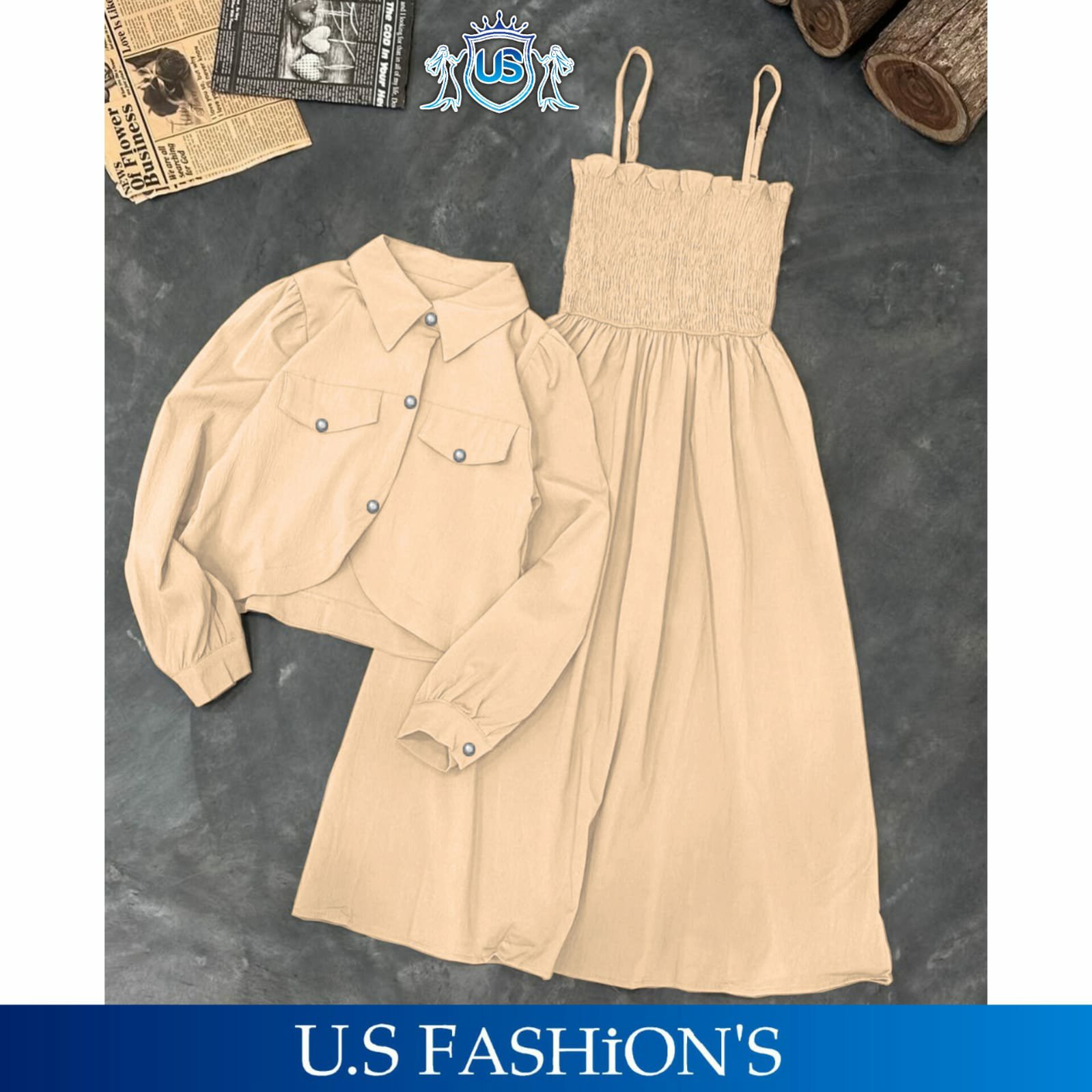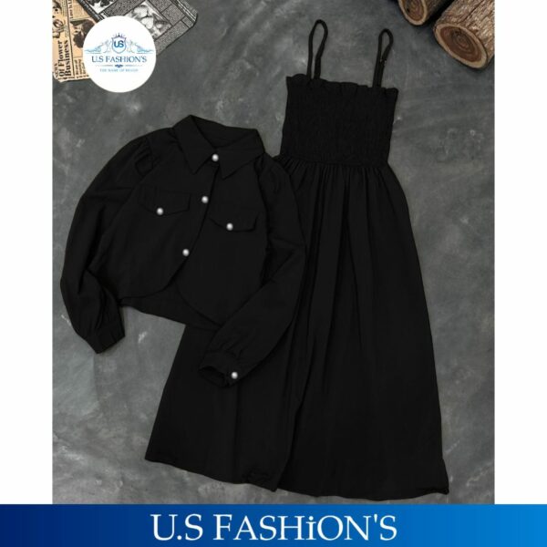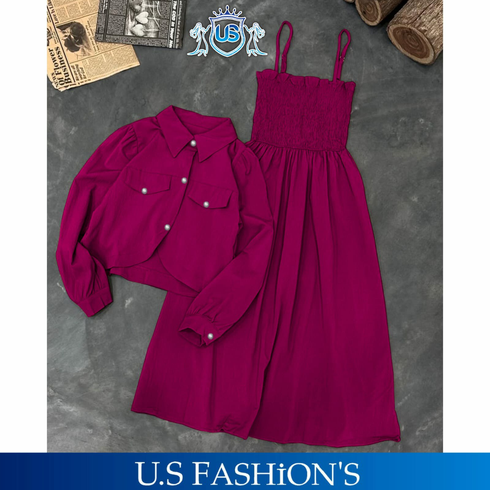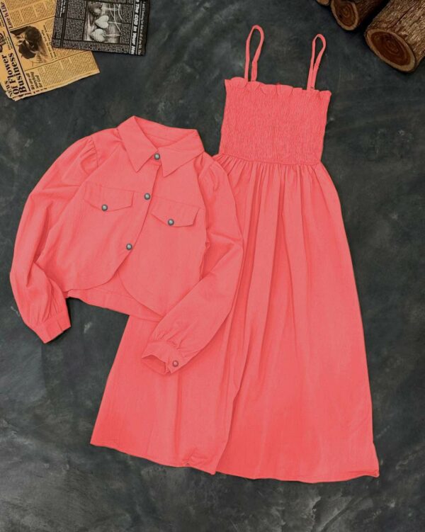 Kaaj Button Coati With Gazzer Romper Frock 2Pcs