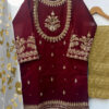 Heavy Embroidered With Front And Back Pearls Attached Gown With Long Maxi Trouser 3 Piece